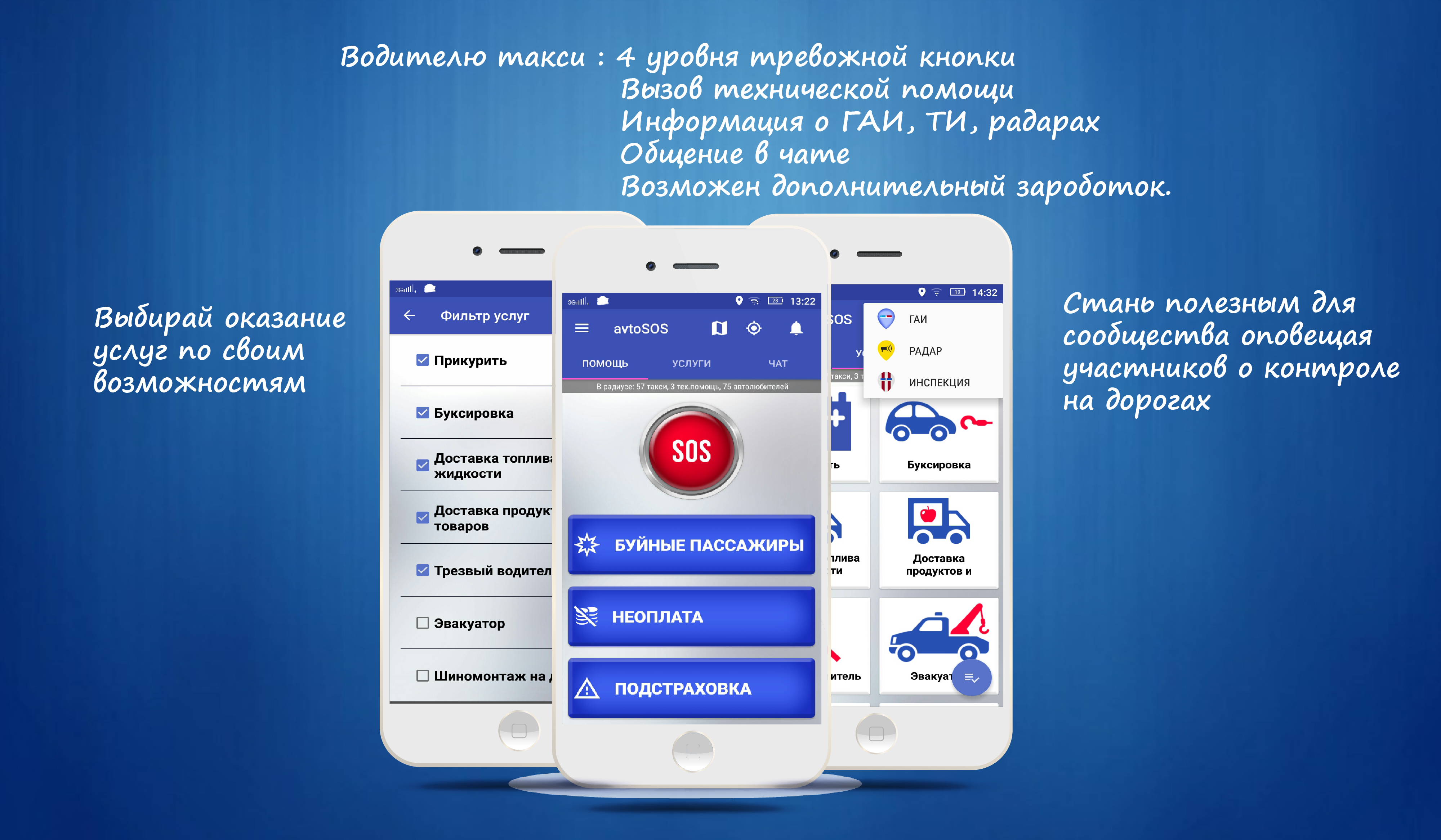 В четвегр 21.07.16 в по 27.07.16 г.Минске будет проходить тестирование приложения тревожной кнопки и технической помощи для водителя такси. Приложение будет включать в себя следующий функционал: тревожная кнопка SOS (угроза жизни), буйные пассажиры (угроза здоровью и имуществу, подстраховка на адресе ( заблагоременное оповещение абонентов программы и предотвращения фактов физического и финасового насилия), неоплата (сдерживание неплательщика силами помощи до приезда наряда милиции или сопровождение его в отдел). Так же предусмотрены кнопки вызова технической помощи на возмездной и безвозмездной основе, такие как подкурка, тоставка топлива, доставка инструмента, доставка продуктов питания, эвакуатор. В программе так же предусмотрен чат для общения. Взаимодействие между абонентами будет происходить с помощью геолокации, интернет и gsm связи. Приложение разработано исключительно действующими водителями такси, при создании мы учитывали все тонкости и нюансы действующих приложений и вызовов ''центра'' дс. Так же мы учли, что такая программа будет востребована не только в Минске, поэтому протестировав ее в столице, она бует распространяться во все города республики, где есть водители такси, нуждающиеся в ней. Дополнительная информация бует изложена после окончания тестирования.