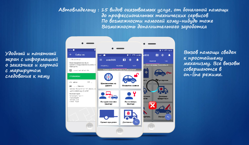 Тестирование продолжается, добавляются новые кнопки, выстраиваются новые логические цепочки принятия помощи, появилась привязка к карте, теперь помощь за городом реально работает и любого можно найти даже в лесу или поле, главное, что бы там работал интернет. Скоро заработает система оповещений о гаи, ти, радарах, пробках (о транспортной инспекции кнопка уже есть). Теперь каждый может поучаствовать в тесте. для этого необходимо прочитать инструкцию и после регистрации отправить на ///Viber +375296245061 Artiom Bakhmet/// Свои ФИО и номер телефона.