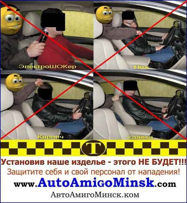 Индивидуальные защитные экраны (разработка «АвтоАмиго») и перегородки - для такси от нападения сзади. Установив наш защитный экран вы (или ваш водитель) будет защищен на 100%, от случаев, которые показаны видеоролике Так же производим продажу и установку автомобильного электрпоШОКоового оборудования, (СИС А2) мощность воздействия 3,0 Дж/сек, напряжение 100 Кв. ТУТ не отвечаем! Писать только на П/Я, который указан на нашем сайте АвтоАмигоМинск.ком